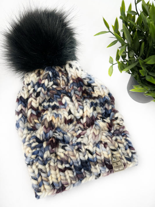 Beautifully soft 100% Merino Wool hand knitted toque. Canadian Made beanie in hand dyed yarn